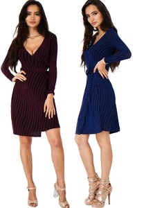 Curvy Stripe Metallic Wrap Bodycon Midi wrap bodycon midi dress
