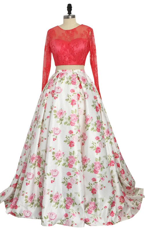 Red White Floral Print Satin Floor white floral print dress