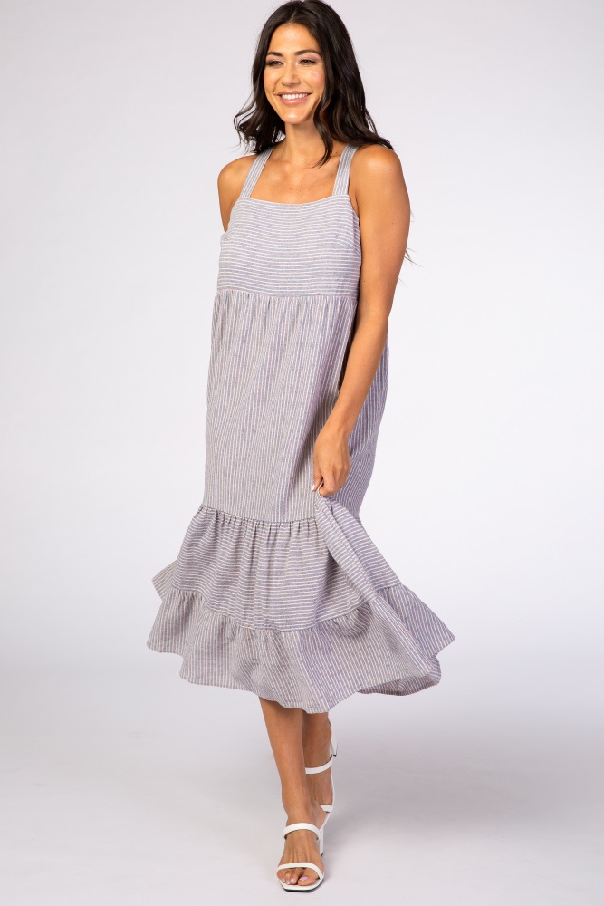 Tiered Thick Strap Maternity Midi Dress thick strap midi dress