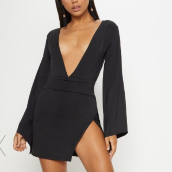 Plunge Extreme Split Leg Bodycon Dress