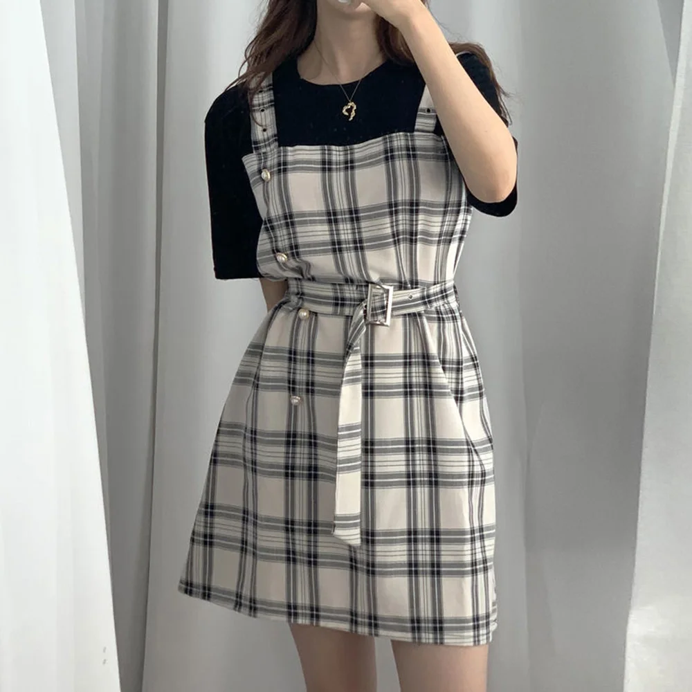Short Sleeve Women Dress Korean Fashion two piece sun dresses