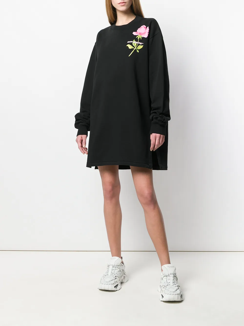 Off-White Rose Print Sweatshirt Dress off white sweatshirt dress