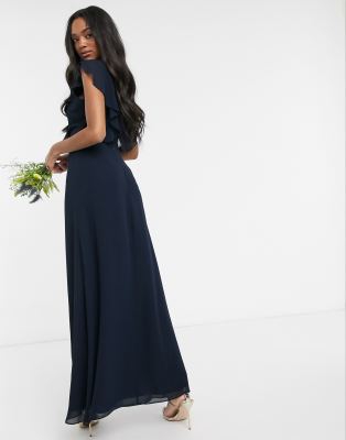 Navy blue chiffon frill wrap maxi navy frill wrap dress