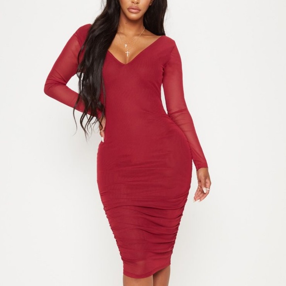 Buy Burgundy Ruched Bodycon Dress for burgundy ruched bodycon dress