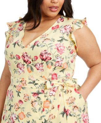 Me Plus Size Floral-Print Wrap Dress macys plus size yellow dresses