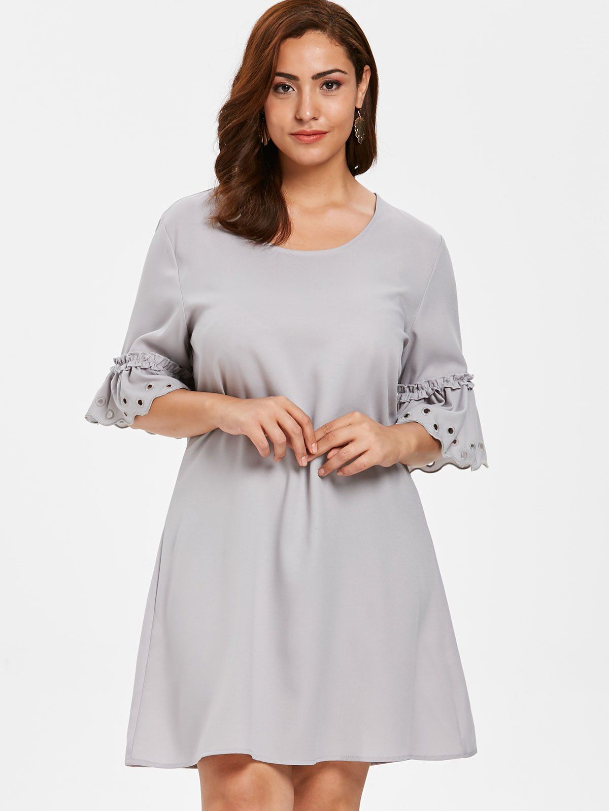 Eyelet Bell Sleeve Shift Dress plus size eyelet dress