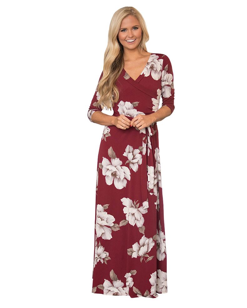 Three Quarter Sleeve Vintage Maxi Dress three quarter sleeve casual dresses