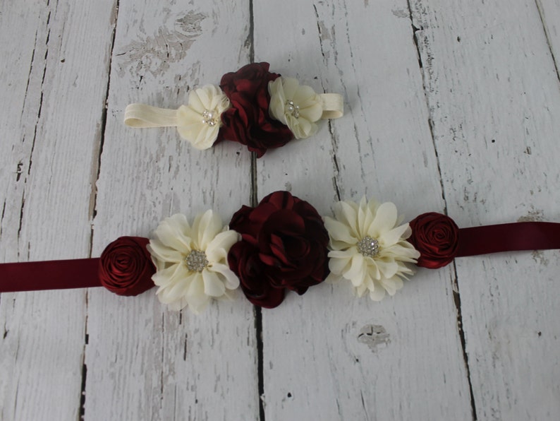 Sash Burgundy Flower Headband Rustic burgundy flower girl sash