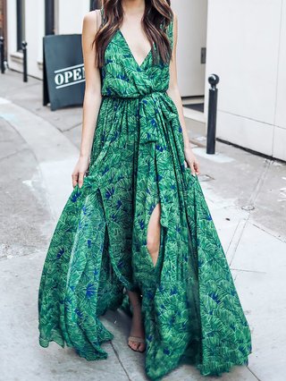 Stylewe Surplice Neck Green Maxi Dress green beach dress