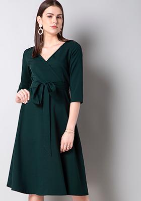 Buy Women Pink Solid Wrap Midi Dress dusty pink cape style wrap midi dress