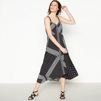 Black Boho Print Hanky Hem Midi Dress principles midi dresses