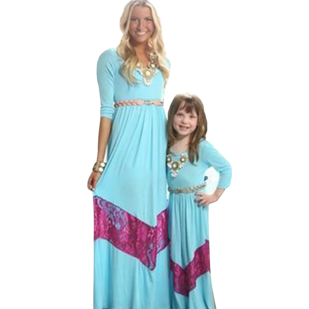 Maxi Dresses Sleeveless Lace Stitching mommy and me maxi dresses