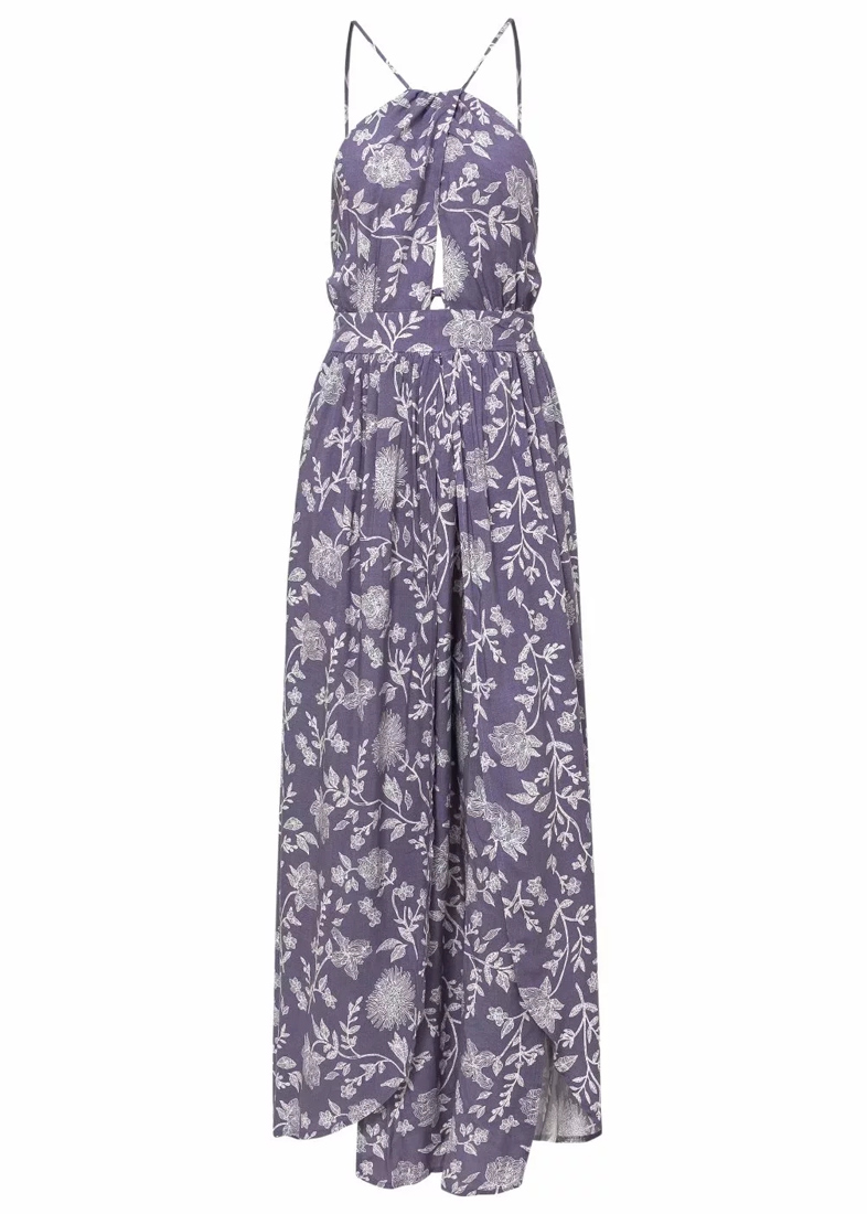 Halter Sleeveless Backless Floral Print backless floral maxi dress