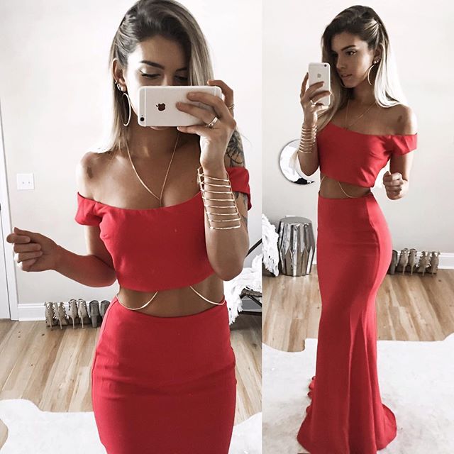 Sexy Red Two Piece Off Shoulder Fitted red two piece outfit