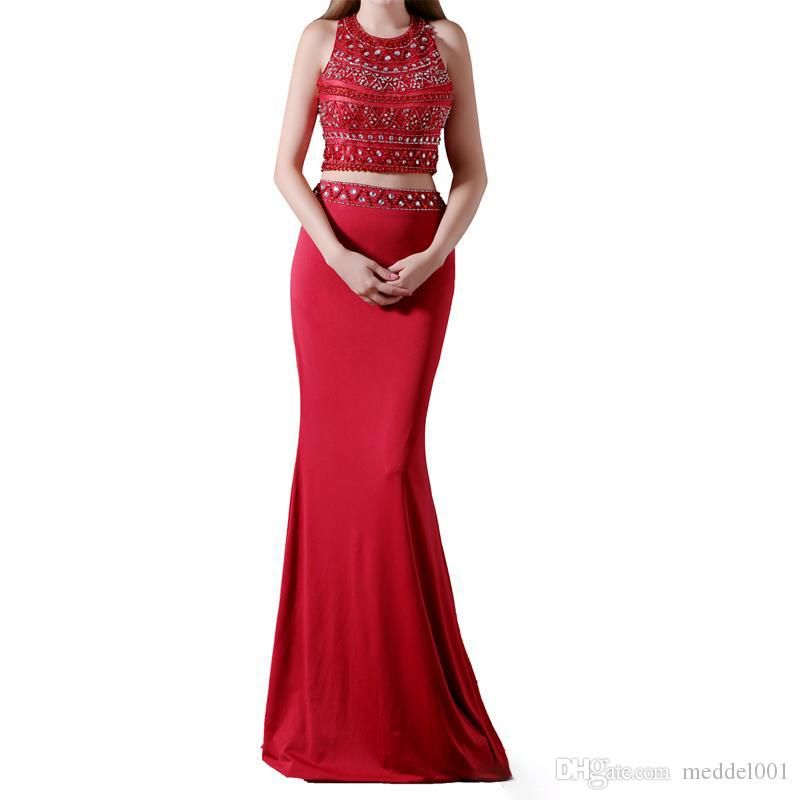 Halter Red Two Piece Prom Dress red two piece homecoming dress