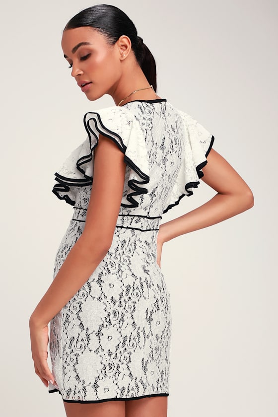 Cute White Lace Dress - Black and White black and white ruffle dress