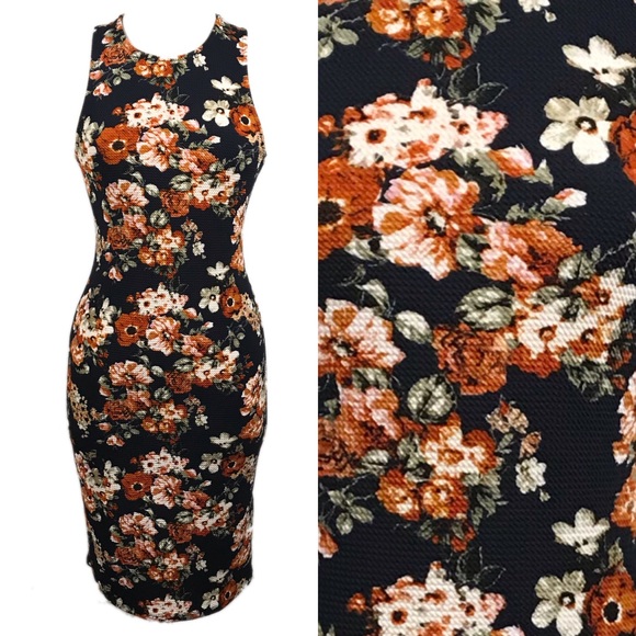 Nwot Navy Floral Bodycon Tank Dress navy floral bodycon dress