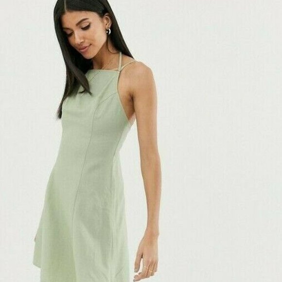 High Neck Low Back Mini Linen Sundress high neck sundress
