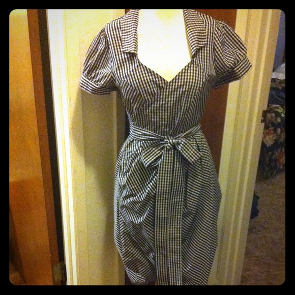 Vintage Henri Bendel Black Wool Blend structured wrap dress