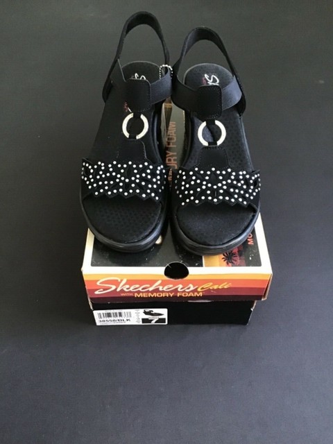 Memory Foam Wedge Sandals 38558 Black skechers memory foam wedge sandals