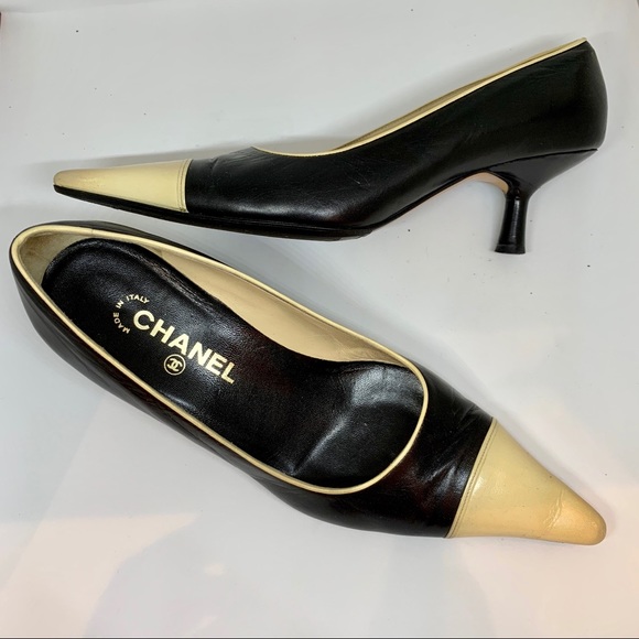 Black Cream Pointed Toe Kitten Heels cream pointed toe heels